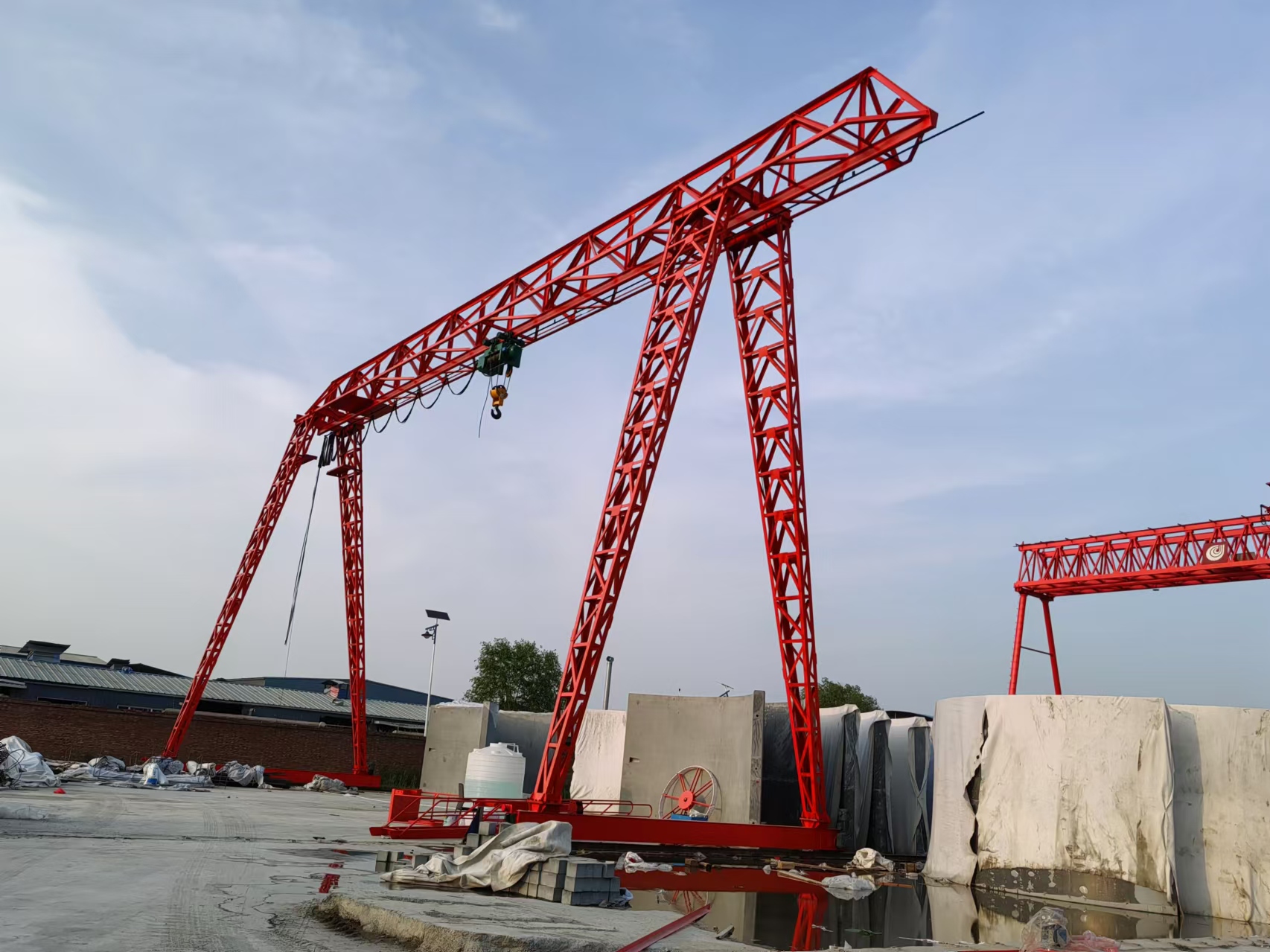 花架式門式起重機與CD、MD等型號的電動葫蘆配套使用,是一種有軌運行的中小型起重機,其適用起重量5~10噸,適用跨度為12~30米,工作環境-20攝氏度~+40攝氏度內。
