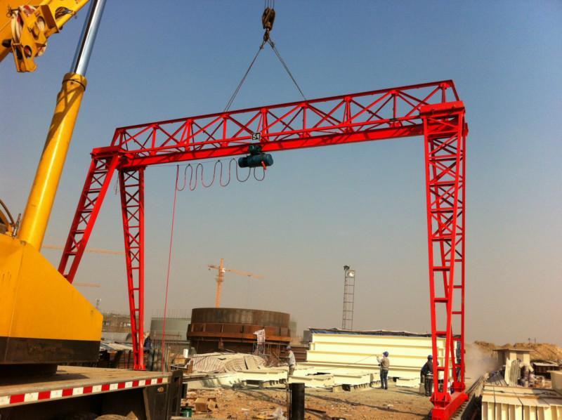 它的金屬結構像門形框架,承載主梁下安裝兩條支腳,可以直接在地面的軌道上行走,主梁兩端可以具有外伸懸臂梁。