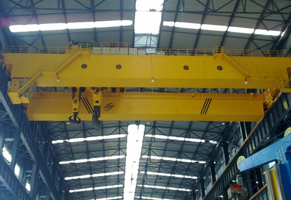 橋式起重機是橫架于車間、倉庫和料場上空進行物料吊運的起重設備。由于它的兩端坐落在高大的水泥柱或者金屬支架上,形狀似橋。橋式起重機的橋架沿鋪設在兩側高架上的軌道縱向運行,可以充分利用橋架下面的空間吊運物料,不受地面設備的阻礙。它是使用范圍**廣、數量**多的一種