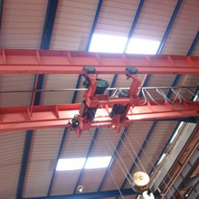 橋式起重機是橫架于車間、倉庫和料場上空進行物料吊運的起重設備。由于它的兩端坐落在高大的水泥柱或者金屬支架上,形狀似橋。橋式起重機的橋架沿鋪設在兩側高架上的軌道縱向運行,可以充分利用橋架下面的空間吊運物料,不受地面設備的阻礙。它是使用范圍**廣、數量**多的一種