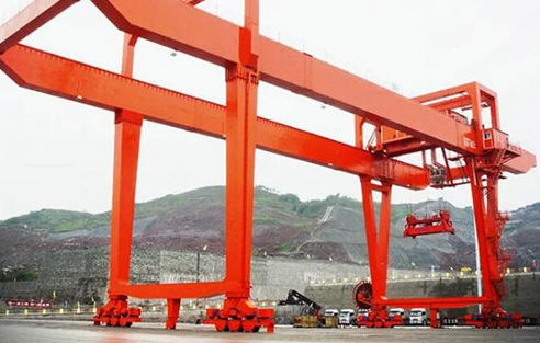 龍門吊即門式起重機,是橋式起重機的一種變形,在港口主要用于室外的貨場、料場貨、散貨的裝卸作業。它的金屬結構像門形框架,承載主梁下安裝兩條支腳,可以直接在地面的軌道上行走,主梁兩端可以具有外伸懸臂梁。龍門吊具有場地利用率高、作業范圍大、適應面廣、通用性強等特點,在港口貨場得到廣泛使用。