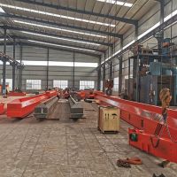 - 橋架:橋式起重機的橋架是一個兩端支撐在平行的兩條架空軌道上平移運行的單跨平板橋。它由主梁、端梁等部分組成,主梁跨過廠房,兩端用端梁連接,主梁外側設有行走平臺和安全欄桿。橋架上裝有大車驅動機構、電箱、升降機構、小車運行軌道和輔助線架。