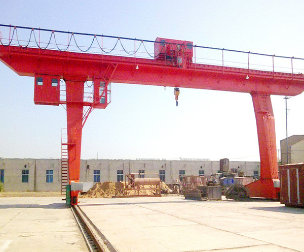 門式起重機的金屬結構像門形框架,承載主梁下安裝兩條支腳,可以直接在地面的軌道上行走。主梁兩端可以具有外伸懸臂梁,這種設計擴大了起重機的作業范圍。根據結構特點,門式起重機可分為全門式起重機、半門式起重機、雙懸臂門式起重機和單懸臂門式起重機等多種類型。