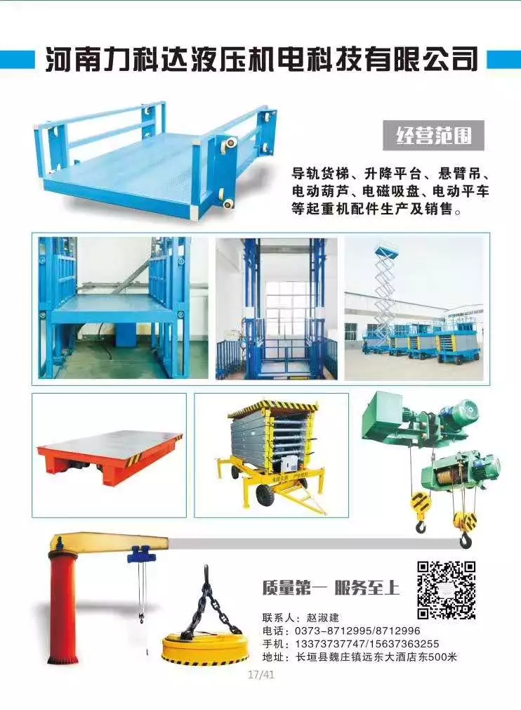 力科達,主營導軌貨梯,升降平臺,電動平車,懸臂吊,電磁吸盤等起重配件。