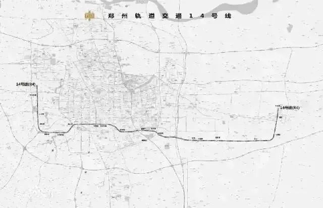 ②規劃 :根據規劃,14號線功能定位是市域放射快線,西起元通大道,東至中牟北,全長62千米,設站點30座。14號線有6個站點5個區間在市民文化服務區內,全長約8千米,平均站距為1.3千米,全部為地下線。由北向南具體為:元通大道站、鐵爐站、市民大道站、中原西路站、奧體中心站、星空路站。