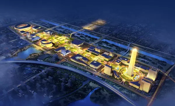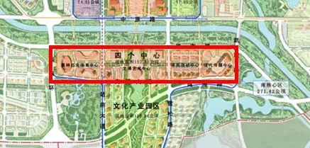 其中,中央文化區占地約1.64平方公里,規劃“四個中心”,自西向東分別為奧體中心、文博藝術中心、市民活動中心和現代傳媒中心。其中“四個中心”共建設有16個單體建筑。