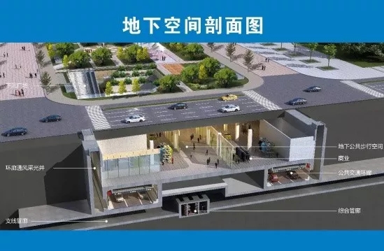 地下三層綜合環廊工程地下空間規劃的以綜合管廊、公共交通環廊和商業設施為主,該工程使整個中央文化區地面真正形成“無車區”,區域內人車分流,屆時,機動車全部通過地下交通系統運行。