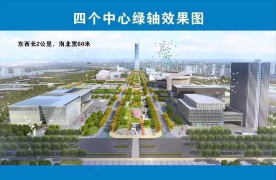 同時地面規劃則是綠軸廣場,東西長2公里,南北寬60米。建筑群以這條綠軸為界分布,這里將會形成一條縱向的“城市綠軸”畫卷。