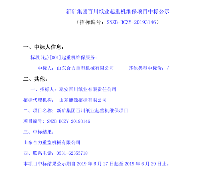移動版:新礦集團百川紙業起重機維保項目中標公示