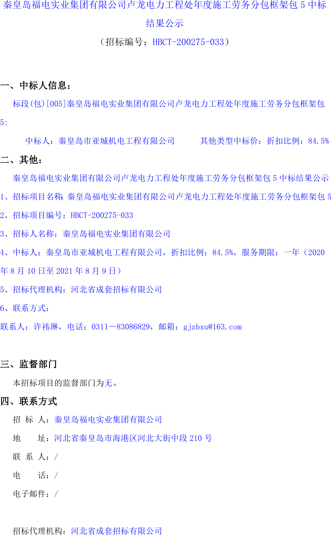 移動版:秦皇島福電實業集團有限公司盧龍電力工程處年度施工勞務分包框架包5中標結果公示