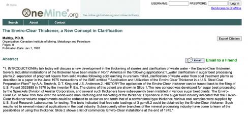 (圖片資料:1976年1月1日,加拿大礦業,冶金和石油學院對艾姆斯特(AMSTAR ENVIRO-CLEAR)濃密機的討論)