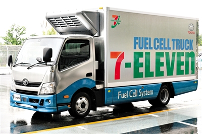 2018年6月,豐田公司為711研發的一款氫燃料電池小型卡車,用于部分店鋪的物流運輸。記者 華義 攝