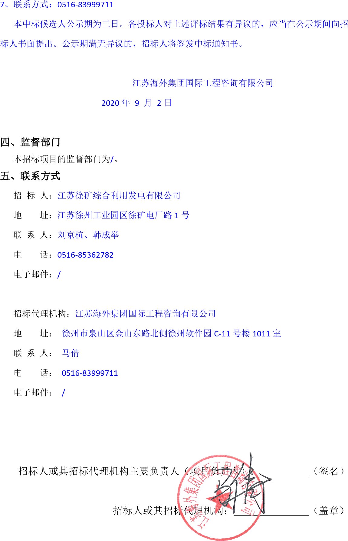 移動版:江蘇徐礦綜合利用發電有限公司廠區亮化及設備防腐工程中標候選人公示