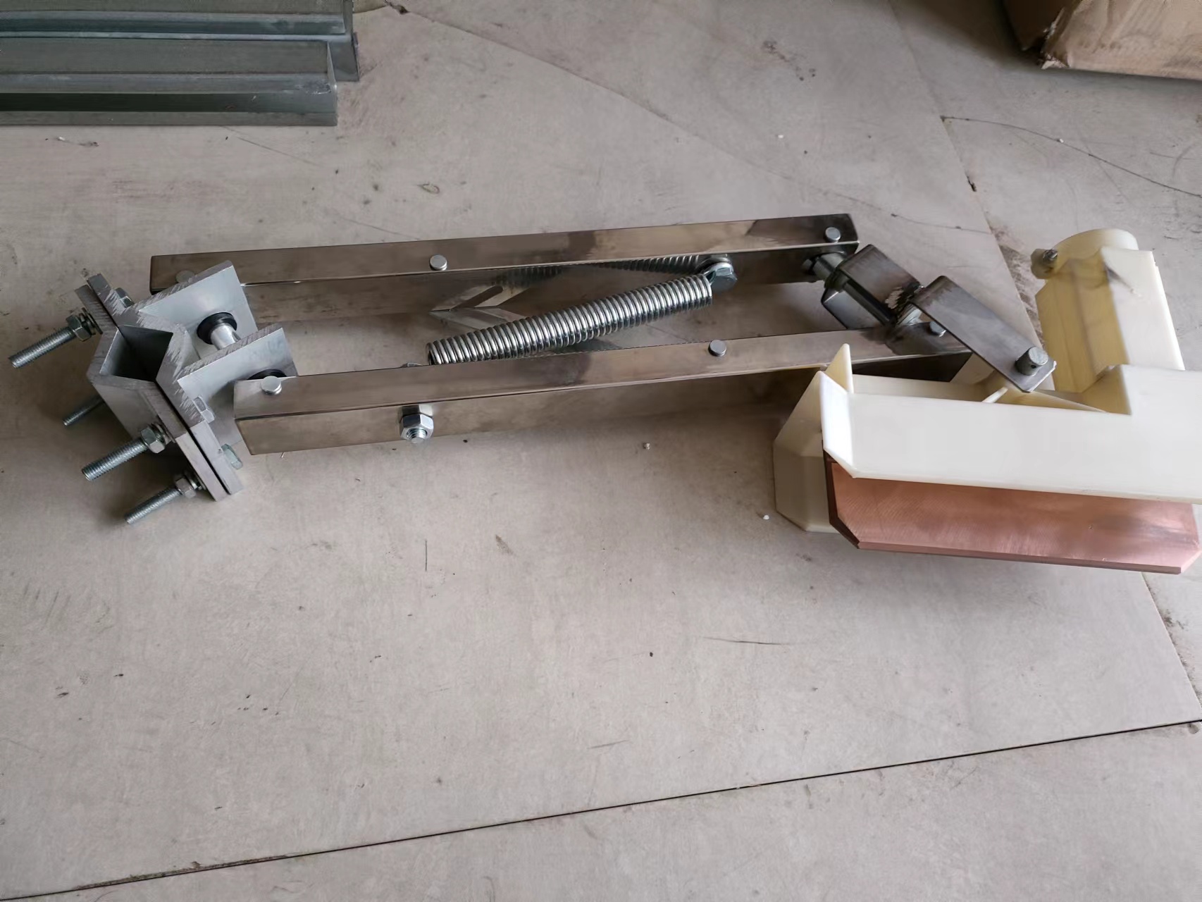 集電器滑觸線系統中集電側拾取電能的主要裝置,它通過集電刷與導軌的滑動接觸,將電能直接傳導至用電器,從而實現系統的移動供電。集電器由機械結構的張力裝置和直接與導軌滑動接觸的集電刷兩部分組成。